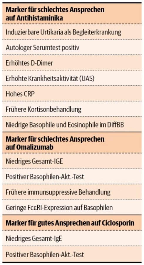 Gemäß Leitlinie sollte man mit einem H1-Antihistaminikum der 2. Generation beginnen. Bei unzureichender Kontrolle nach mehr als vier Wochen kommt zusätzlich Omalizumab zum Einsatz. Der Antikörper gegen IgE hat sich in Studien als außerordentlich gut wirksam erwies. Fall nach sechs Monaten immer noch kein ausreichender Effekt erreicht ist, ist Ciclosporin noch eine Alternative.