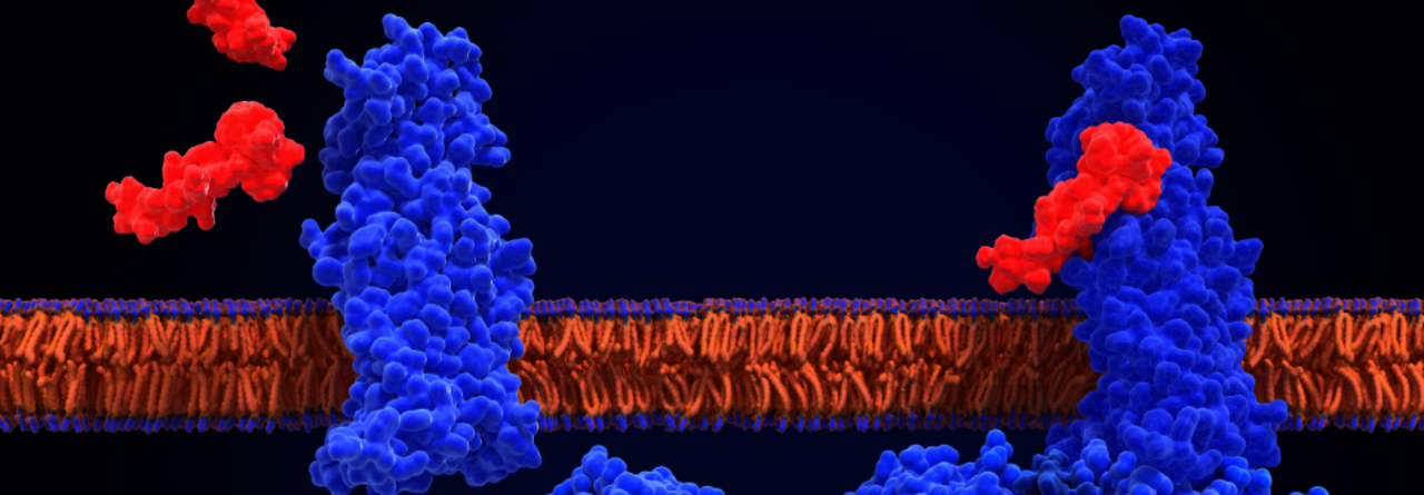 GLP1-Rezeptoragonisten (rot) binden wie das natürliche Peptid an den Rezeptor, haben aber oft eine längere Halbwertszeit.