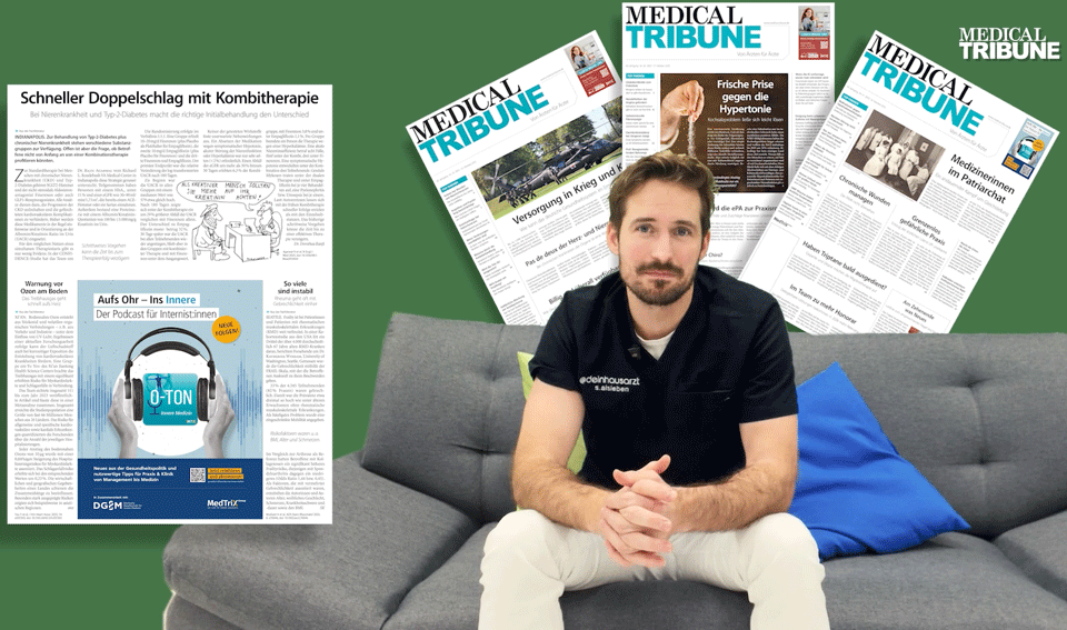 Sebastian Alsleben ist Hausarzt und Medfluencer und stellt Ihnen in regelmäßigen Abständen die Topthemen der aktuellen Ausgabe der Medical Tribune vor. Wir nehmen von Ärzten für Ärzte wörtlich und senden direkt aus der Praxis, damit Sie die aktuellen Infos direkt auf Ihr Ohr oder vor die Linse bekommen.